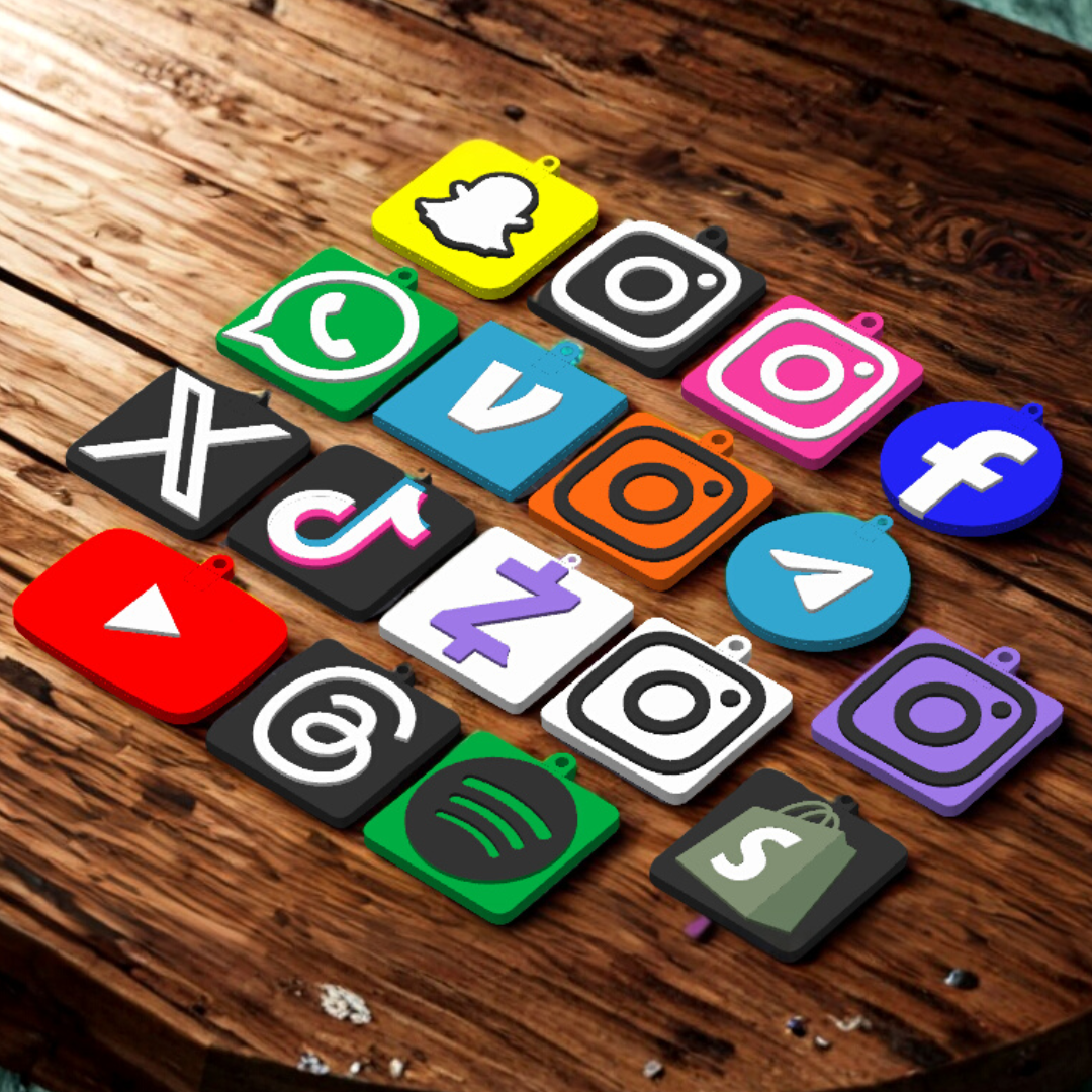 Crafted in vivid colors and featuring precise 3D-printed logos for your favorite platforms like Instagram, TikTok, Spotify, Venmo, and more, these durable, water-resistant tags are designed to stand out while keeping your brand or personality connected everywhere you go.